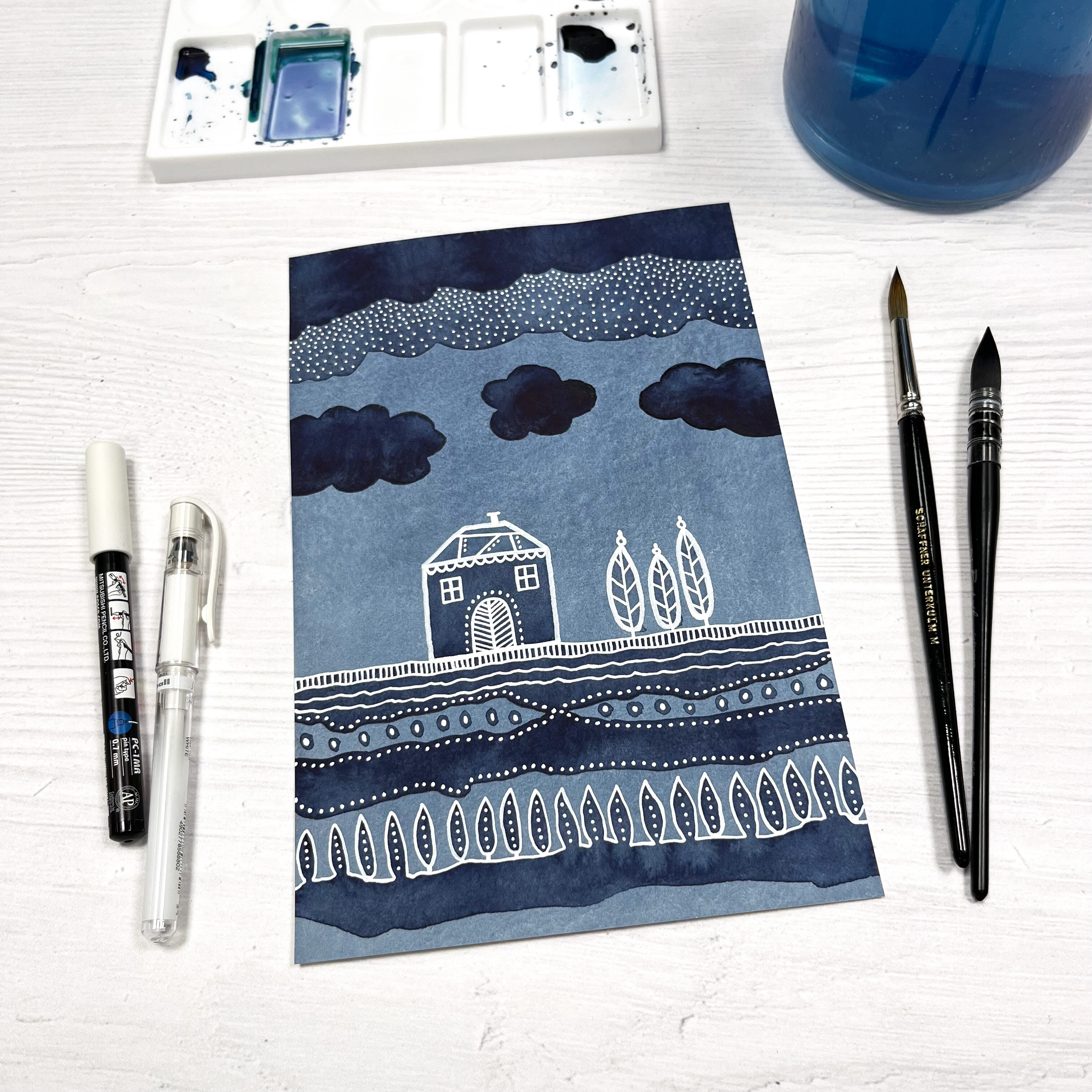 - Benutzung von hochwertigen Aquarellfarben, Finelinern, Gelstiften und Acrylmarkern