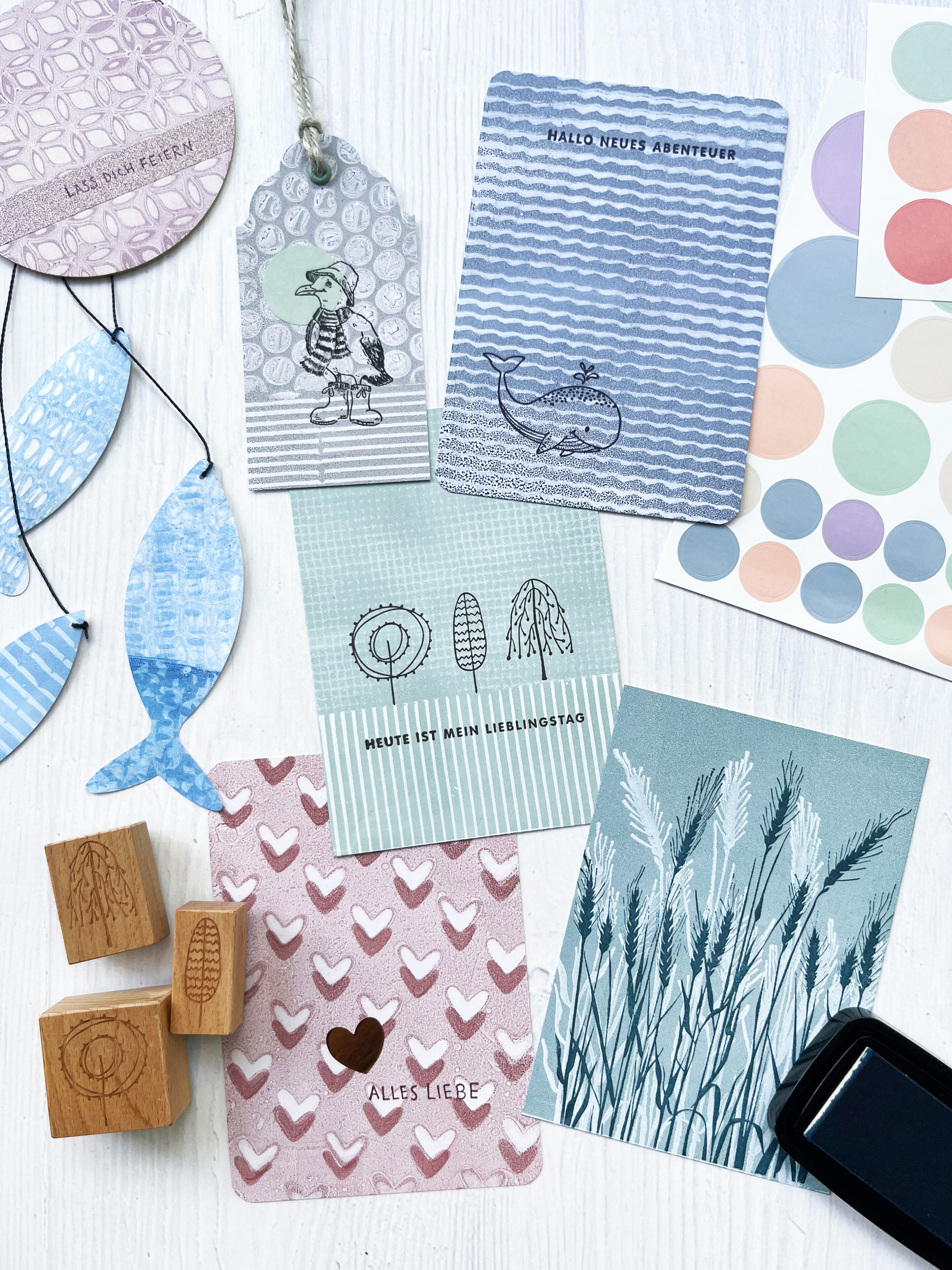 - Nutzung von Gelliplatte, Stempel, Stempelkissen, Schablonen, Motivstanzer